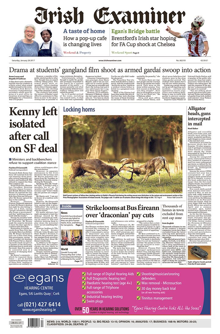 Locking Horn’s – his picture of fallow deer clashing antlers during rutting season in Dublin’s Phoenix Park – took third place in the ‘Nature & Environment’ category. The image was also featured on the front page of Saturday’s Irish Examiner.